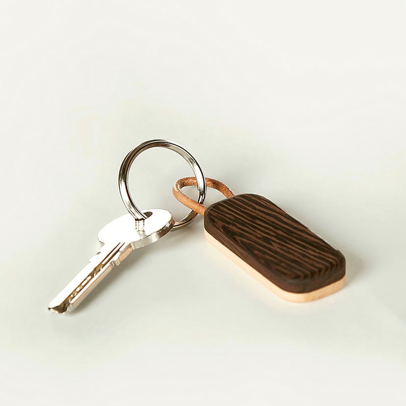 Recycled wood keyring made with exotic woods of maple and wengue.